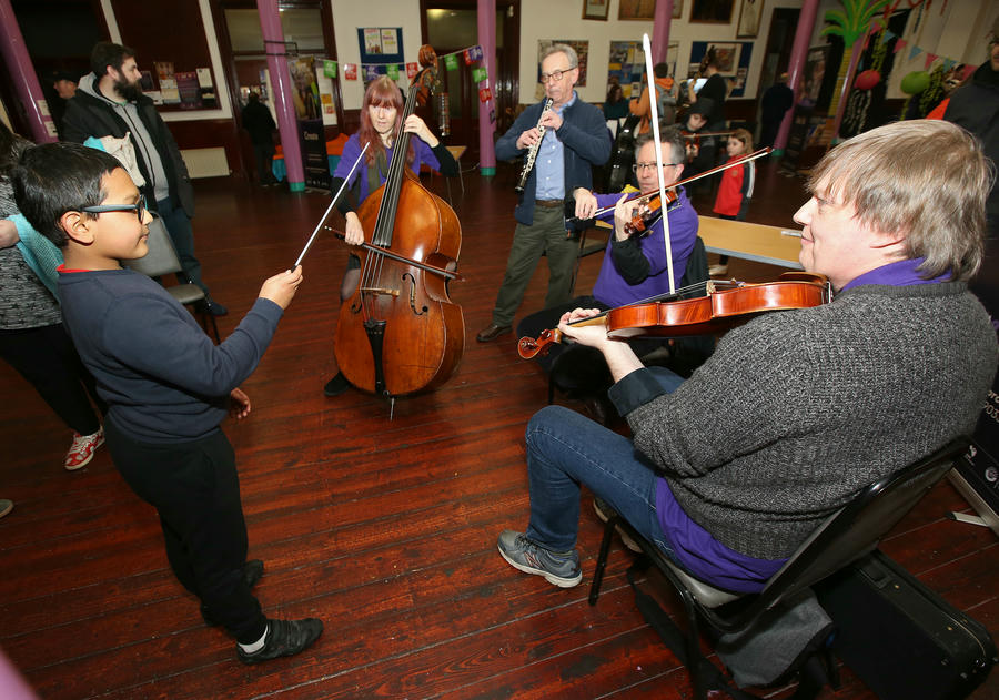 We love to work in partnership with other arts organisations so that participants benefit from a range of approaches and art forms. We also enjoy performing in spaces you mightnโt expect to find us โ like the Indian Community Centre in north Belfast, which the orchestra โtook overโ for a day as part of the Belfast Weekender Festival in March 2018!